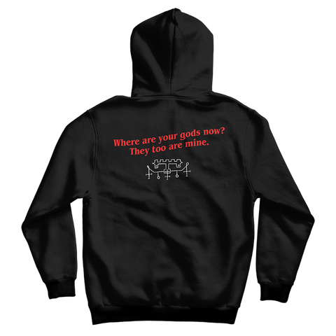 Printed on Independent Trading Co brand hoodies. Black pullover hoodie. Front and back prints.